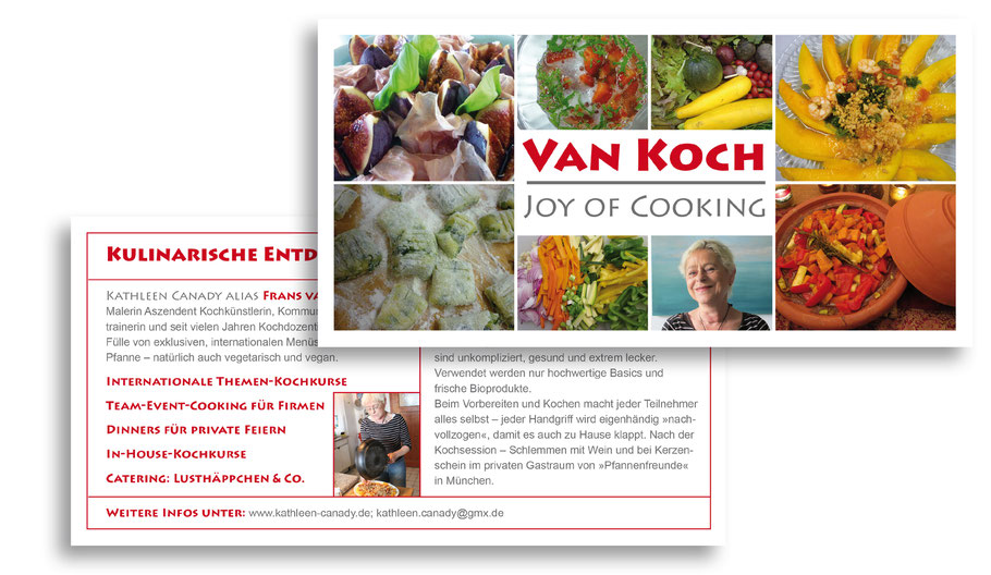 Für die freischaffende Künstlerin/ Aszendent Kochkünstlerin (!) gestalte ich regelmäßig die Einladungskarten zu ihren