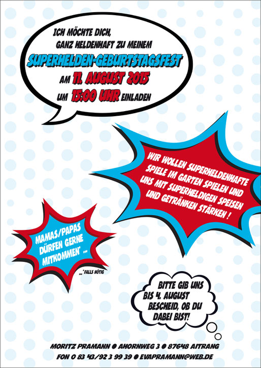 Hier nun also meine maßgeschneiderte Superhelden-Geburtstags-Einladungskarte für einen Riesen-Superhelden-Fan.