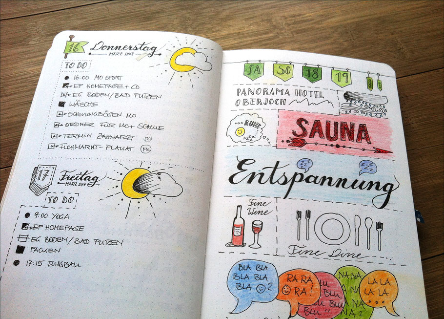 Mich fasziniert Handlettering nicht nur, weil ich es in meinem Terminplaner (Bullet Journal) als illustratives Element nutze (siehe unten). Handlettering – also diese wunderschönen, kunstvollen